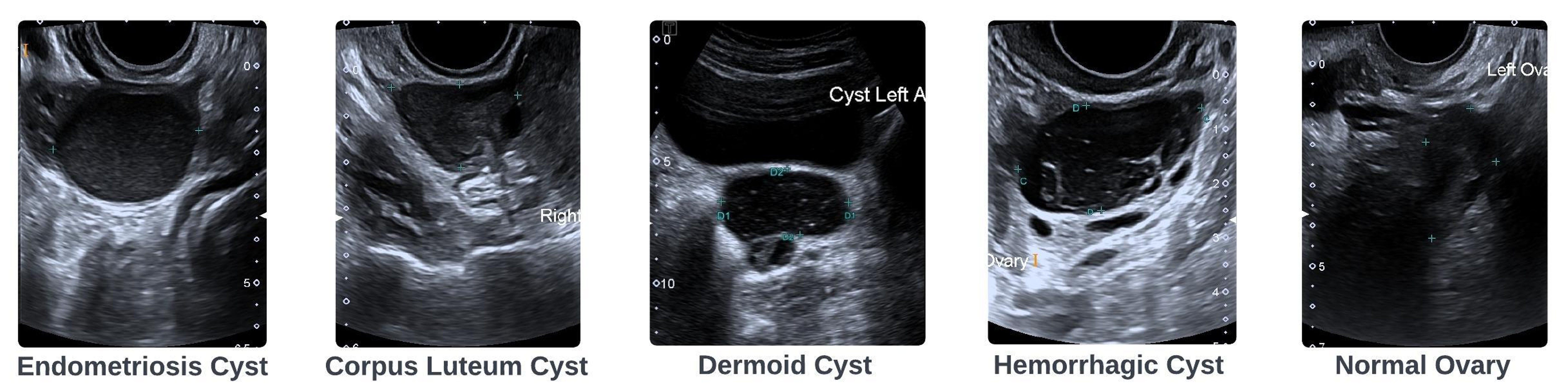 cyst, endometriosis cyst, teratoma, dermoid cyst, polycystic ovary and hemorrhagic