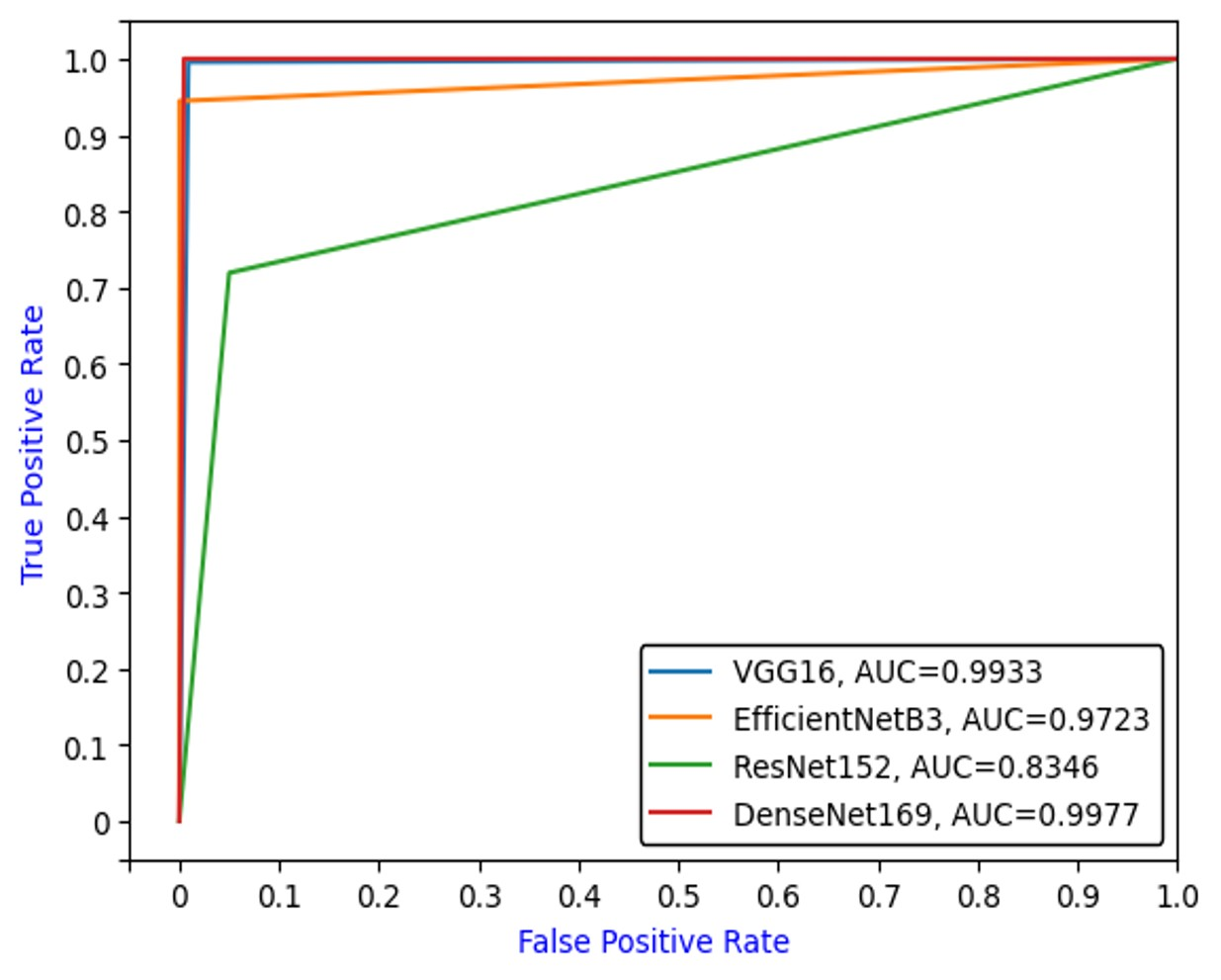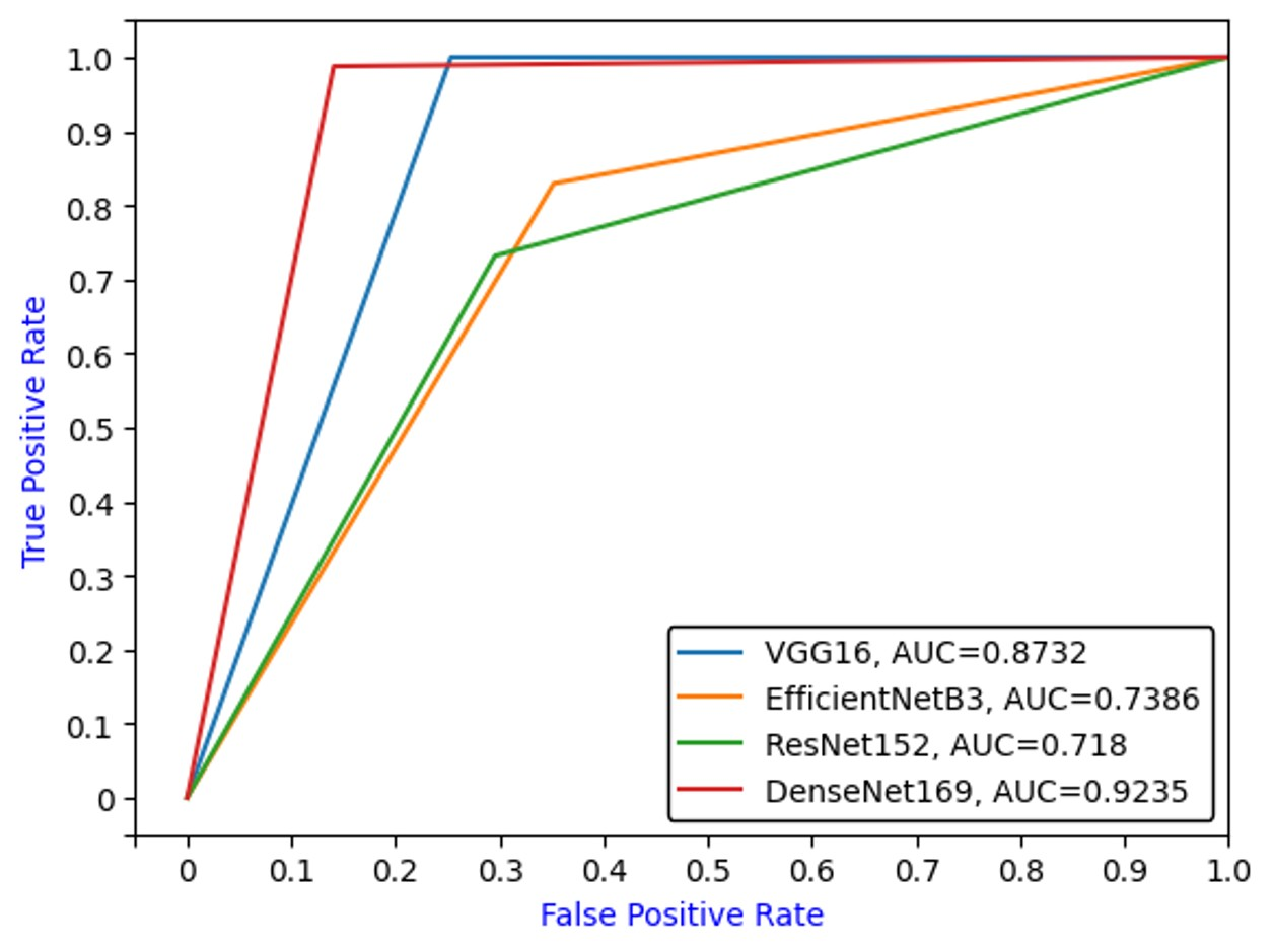 • The proposed model, fine-tuned DenseNet-169 excels in performance and efficiency