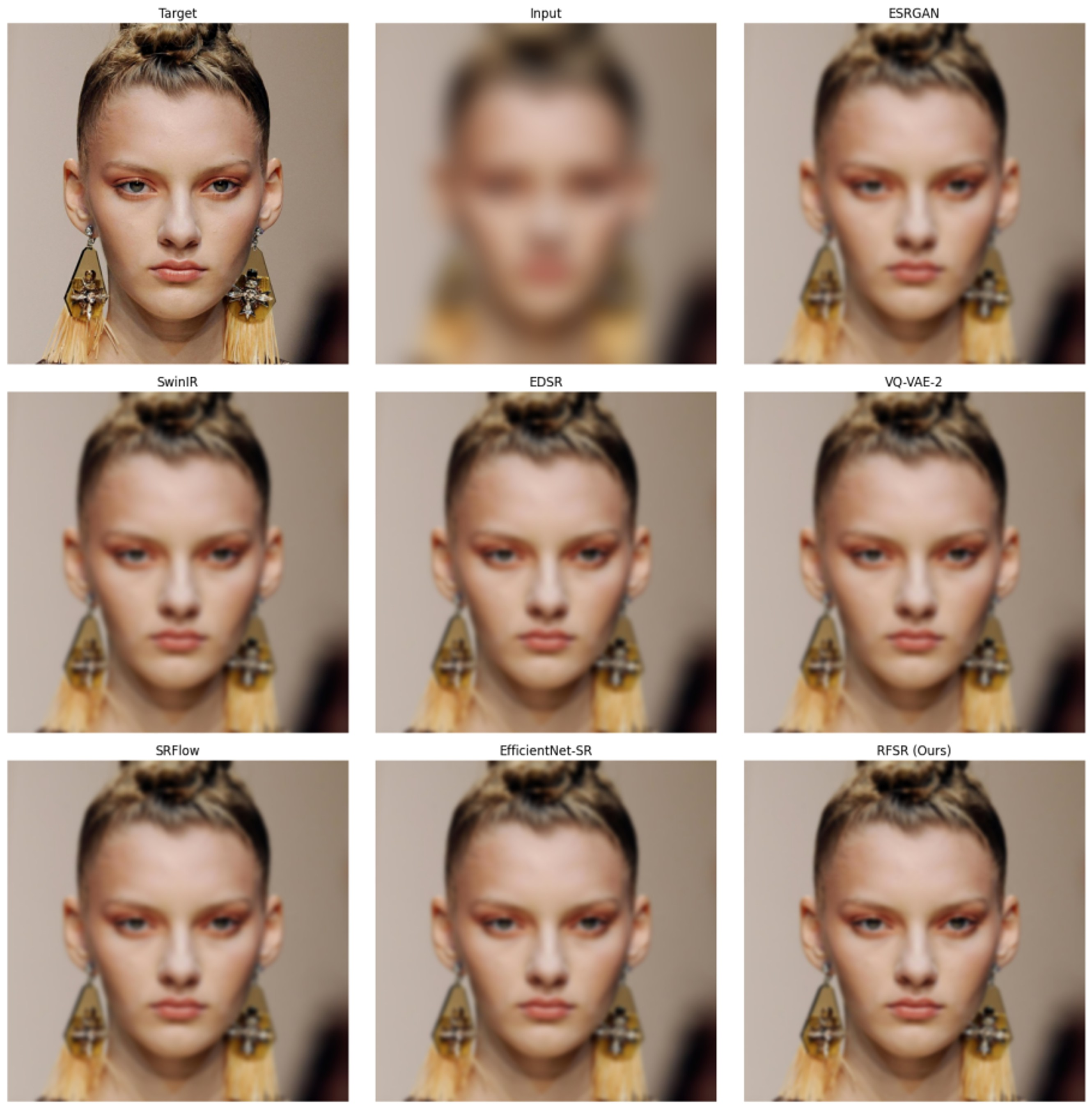 between RFSR and other methods is particularly notable. For instance, EfficientNet-SR,