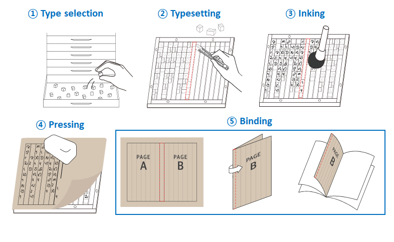 Fig. 1. The process of metal letterpress printing starts with the type selection,