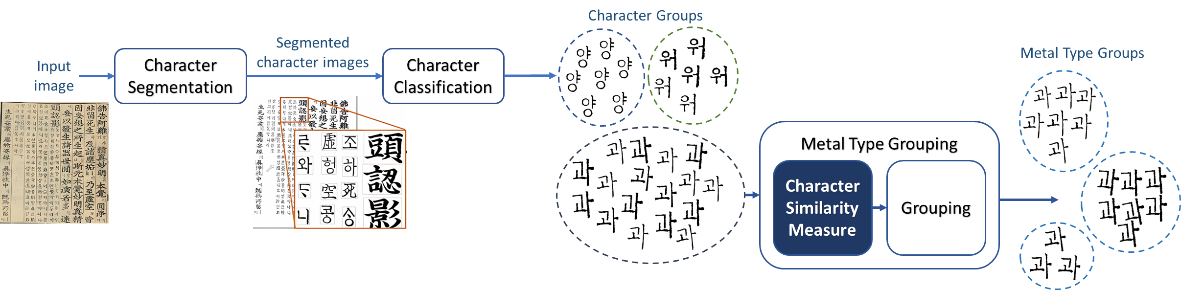 segmentation, character classification, and character grouping followed using the