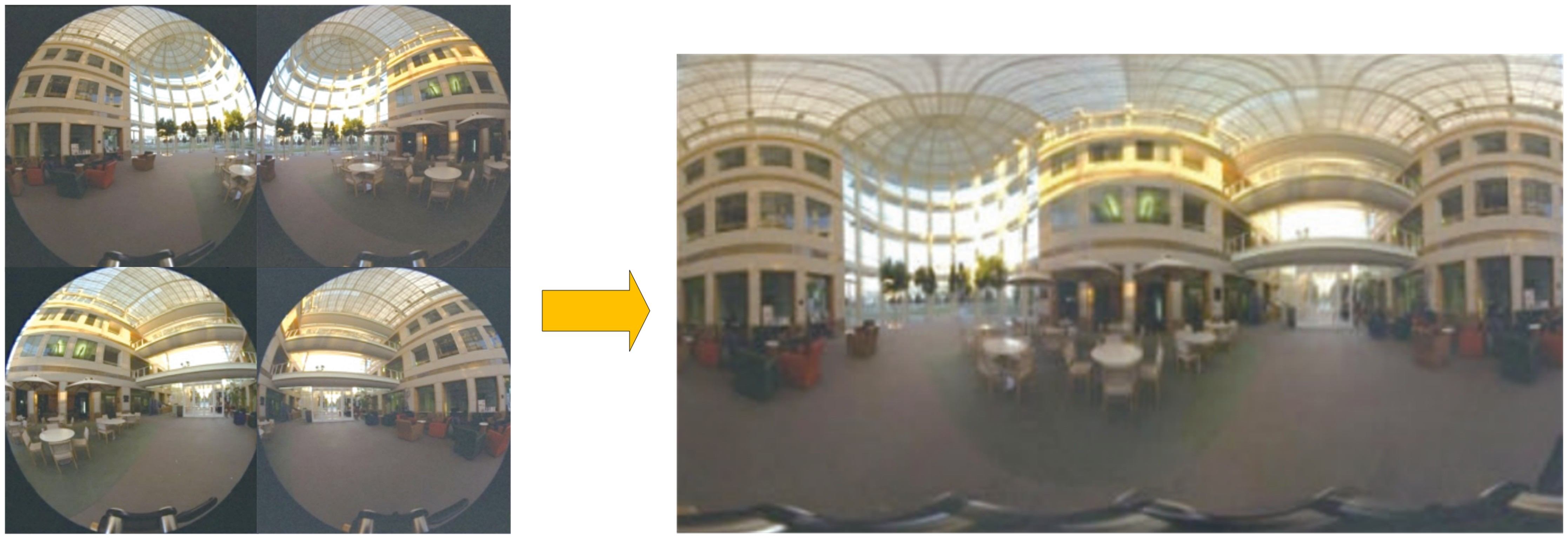 When stitching fisheye images, it is necessary to first correct the images, that is,