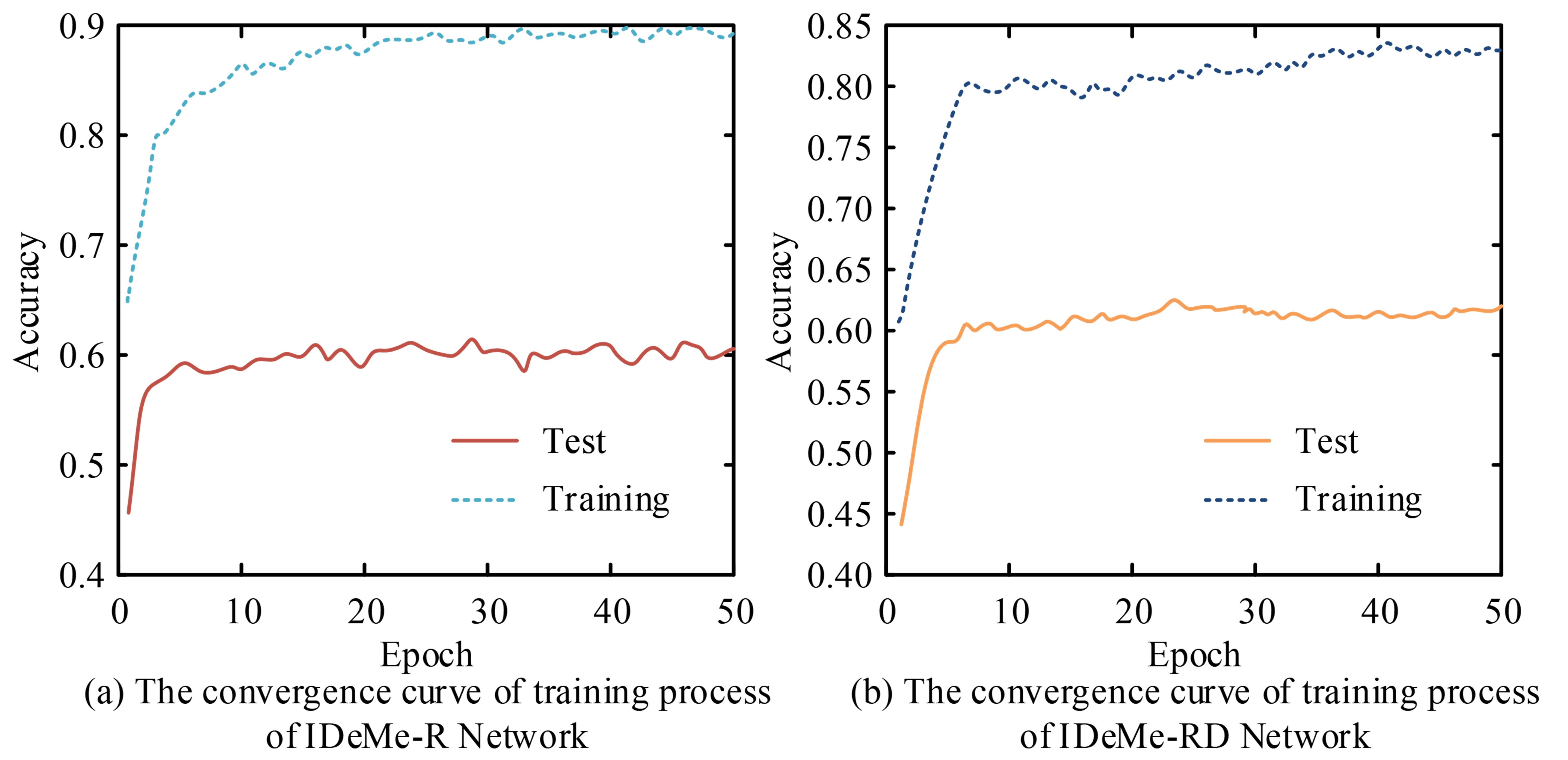 adaptive fusion strategy (IDeMe-RD Network) is denoted in Fig. 10. From the figure, both improved networks can converge faster and are more stable.