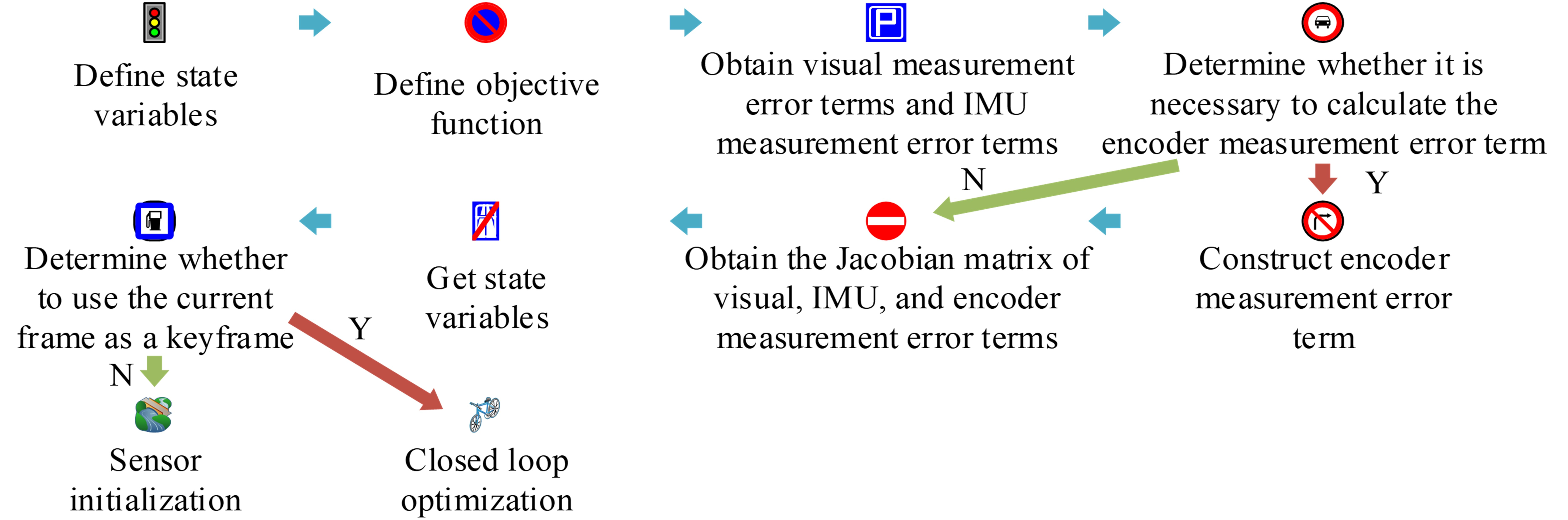 factor, respectively. Fig. 6 depicts the primary workflow of the vision-IMU-encoder sliding window optimization.