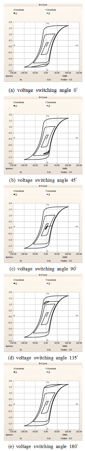 Fig. 5. Hysteresis curves according to voltage switching angle during magnetizing