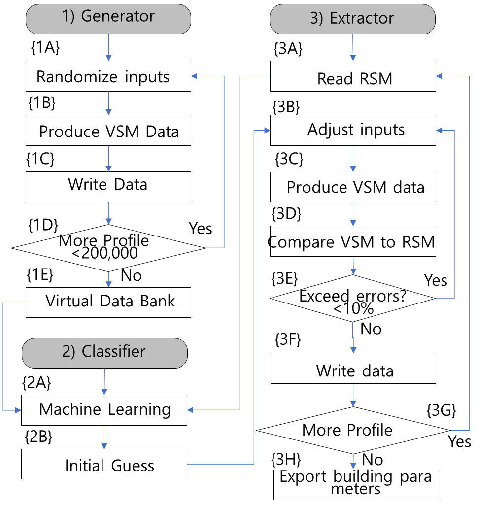 이러한 선행연구는 실제 스마트미터 데이터가 건물의 물리정보를 포함하지 않는 현실에서, VSM 기반 시뮬레이션 데이터로 기계학습 모델을 학습시켜 역추론