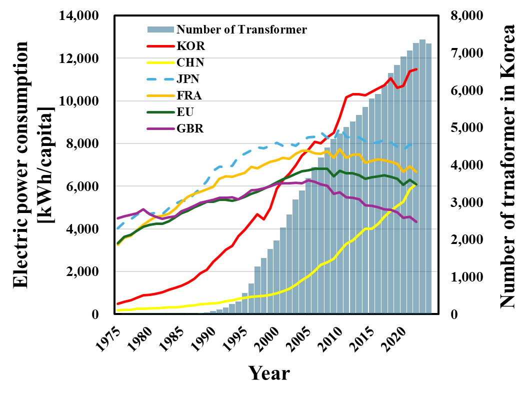 Fig. 1. Per capita electricity consumption and the trend of transformers for domestic