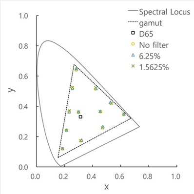 조건을 구현하였다. Table 1은 부착한 ND 필터 조건에 따른 흰색의 휘도를 나타낸다.