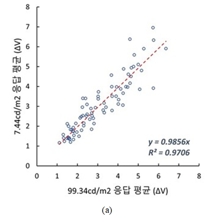 때문에, 휘도 조건에 따른 명확한 경향성을 파악하는 데에는 한계가 있었다.