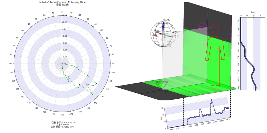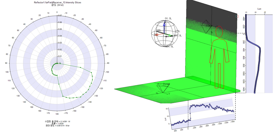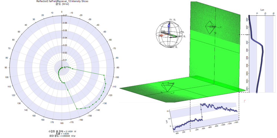 대해 전산모사를 수행하여 최종 구현된 성능을 확인하였다. 전산모사에 사용된 소프트웨어는 ray-tracing기반의 조명설계 프로그램인 LightTools(Synopsys,