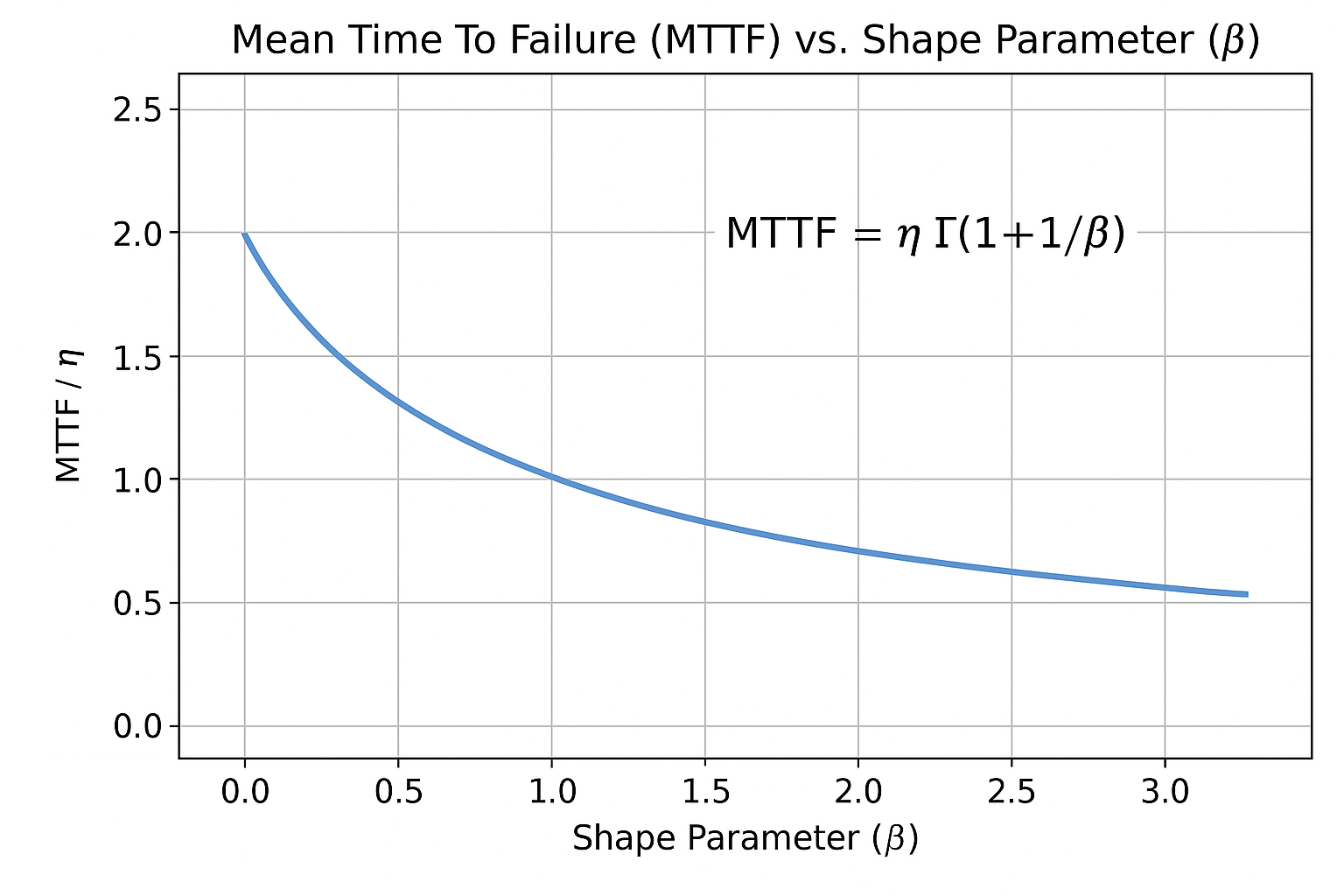 Fig. 3은 와이블 분포에서의 평균수명(MTTF)과 감마함수와의 상관관계를 곡선으로 나타낸 것이다[7].