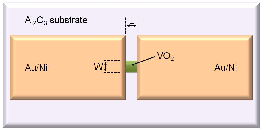 Fig. 1. Schematic diagram of fabricated the two-terminal device based on VO2 thin films