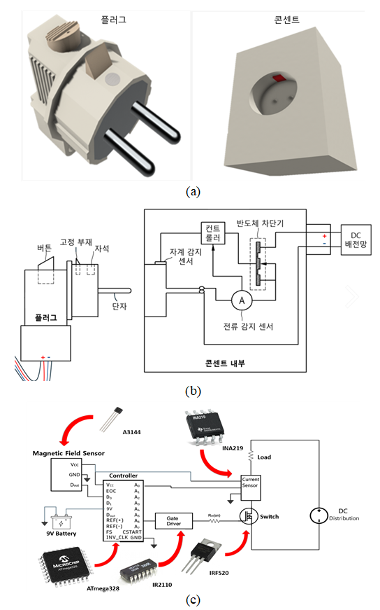 연구들이 진행되고 있다[3-5]. 이에 본 연구에서는 DC 배전망 도입 시 전자기기 연결 시 발생할 수 있는 기존 플러그 및 콘센트 시스템의 문제를 해결하고자, 전력용 반도체를