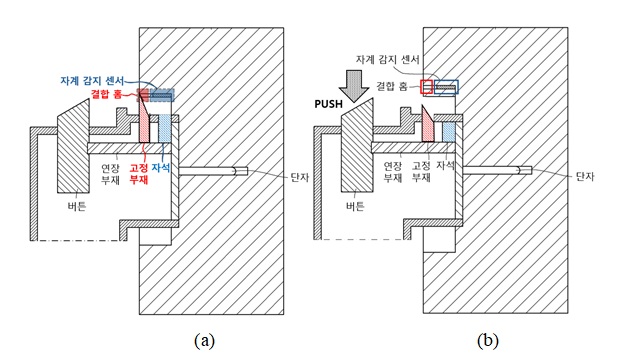 누르면 자석이 이동하게 되며, 이로 인해 자계 측정 값이 임계값 미만이 되면 컨트롤러는 전력용 반도체 소자를 OFF 시켜 DC 전원 공급을 안전하게