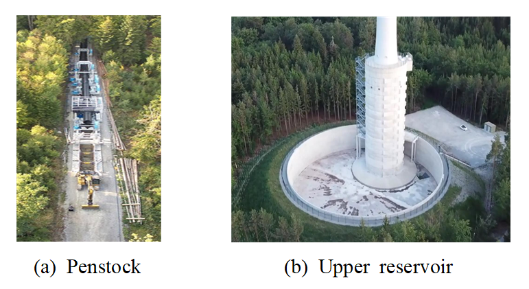 저장 시스템이다. Fig. 1은 독일의 Gaildorf Water Battery 프로젝트로 연간 발전 전력량은 최대 42GWh이며, 각 터빈의 정격 출력은 3.4MW이며, 총