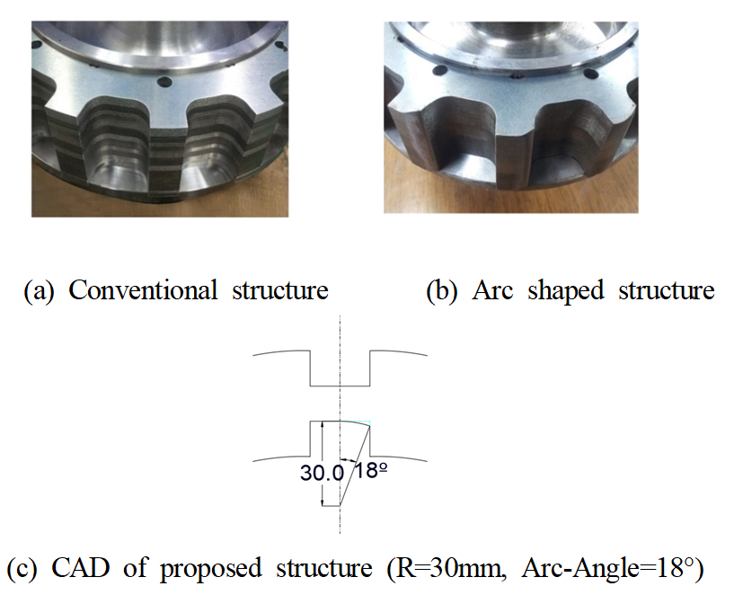 가장 최적인 회전자 형상을 설계하였다. 제안된 효과를 검증하기 위해 회전자만 일반적인 구조와, 제안된 형상의 구조를 각각 제작하여 1kW급 성능 시험을