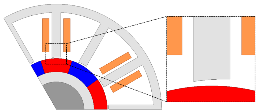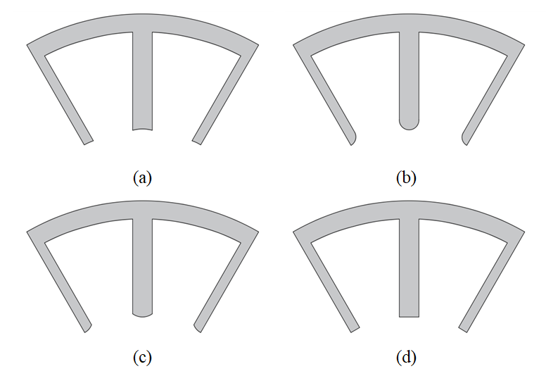 하지만 고정자 슈 제거로 인해 자속 확보가 어려워 성능저하가 발생하며, 이를 보완하기 위해 고정자 치 끝단 구조와 고정자 비대칭 공극 구조를 설계