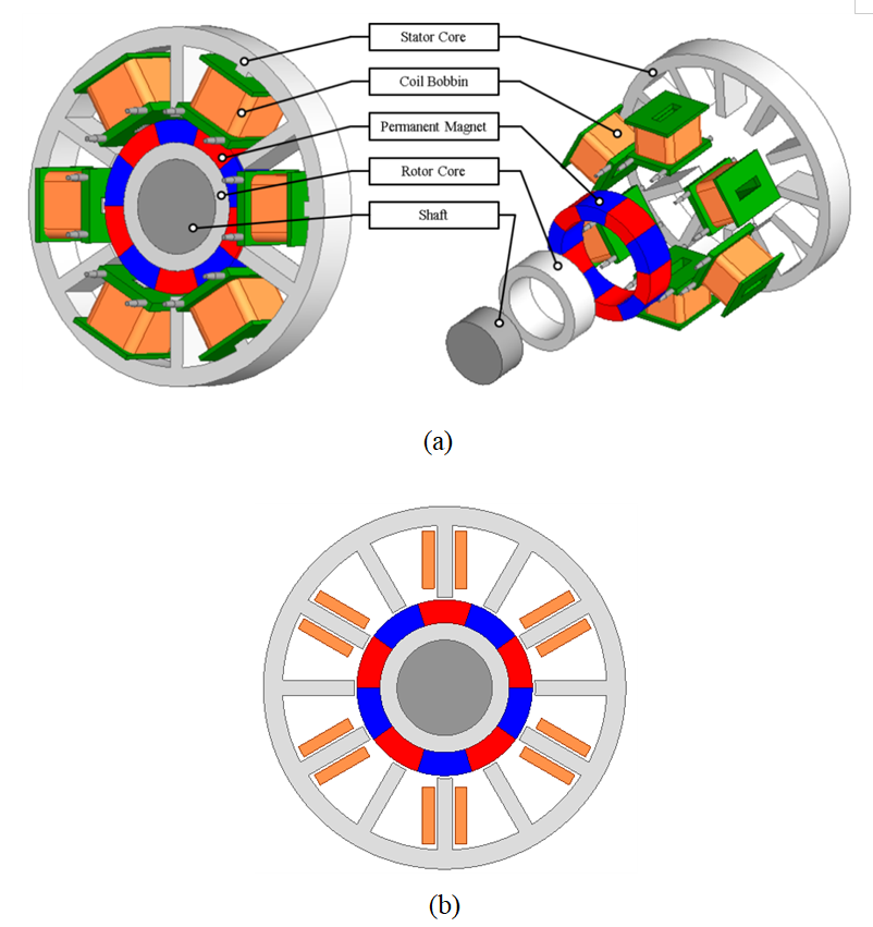 Fig. 2. Coil bobbin insertion type BLDC motor (a) Structure (b) Analysis model