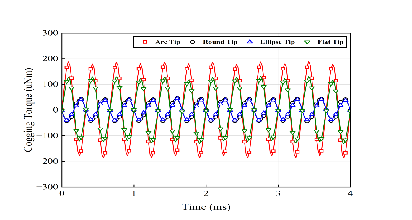 영구자석형 전동기의 코깅토크는 고정자 슬롯과 회전자 영구자석의 상호작용에 의해 발생하는 힘이며, 이는 회전자 위치에 따라 자속 경로가 자기저항이 최소가