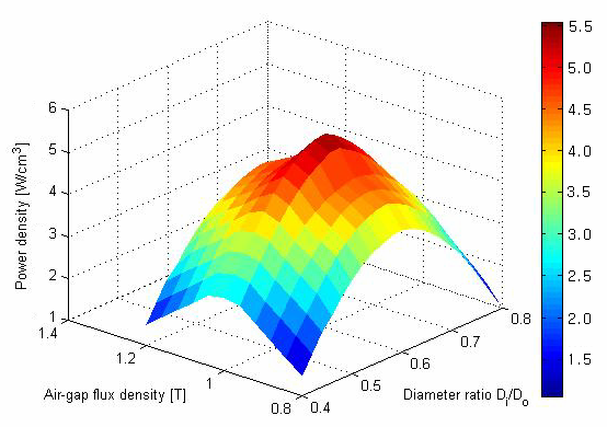 AFPM 기기 특성상 제약된 외경 치수에서 최대 출력을 내기 위해선 발전기 내경 치수를 줄여 유효단면적을 크게 가져가야 할 필요성이 있다. 이로 인해