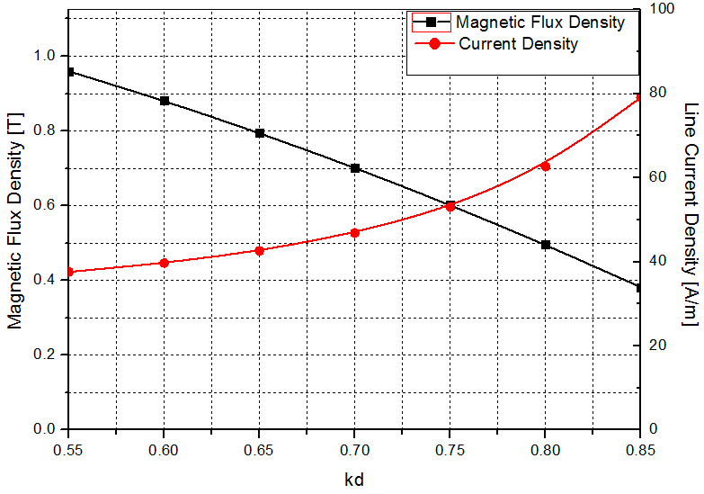여기서, $\alpha_{i}$는 영구자석 극호비, $m$은 고정자 상수, $N_{1}$ 은 직렬 턴 수, $k_{w}$는 권선 계수, $I_{a}$는