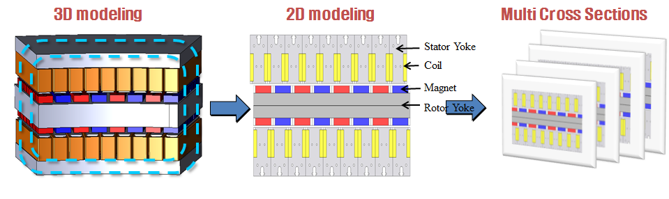 이용하여 발전기 유효 부품의 재질 및 주요 치수를 산정하게 되며, 해석을 위한 모델링을 거쳐 발전기 특성을 예측하게 된다. 발전기를 해석하는 단계에