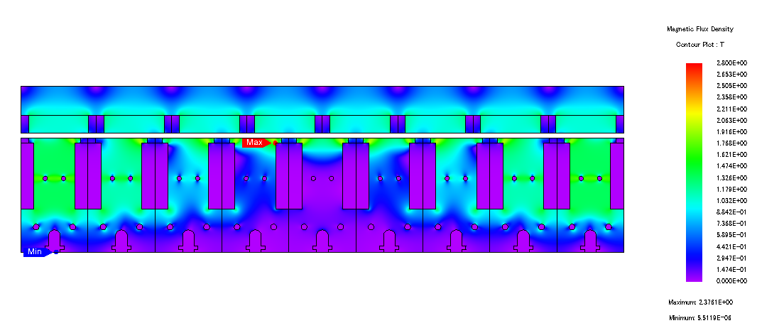Fig. 11. Analysis results of flux density distribution at 3-phase short condition