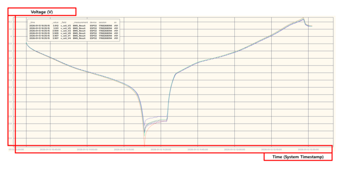 하에서도 전압 변화의 크기와 형태에서 미세한 차이를 나타낸다. 이러한 결과는 셀 단위 전압 데이터가 개별적인 계측 값으로 관리됨을 시각적으로 보여주며,