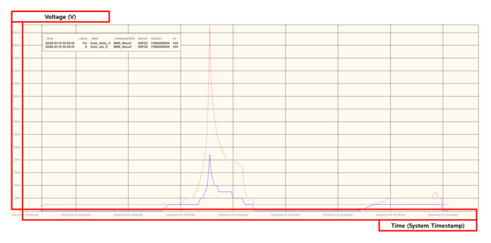 본 결과는 셀 단위 전압 데이터뿐만 아니라, 해당 데이터로부터 계산된 통계적 지표 역시 동일한 데이터 흐름 내에서 함께 관리될 수 있음을 시각적으로