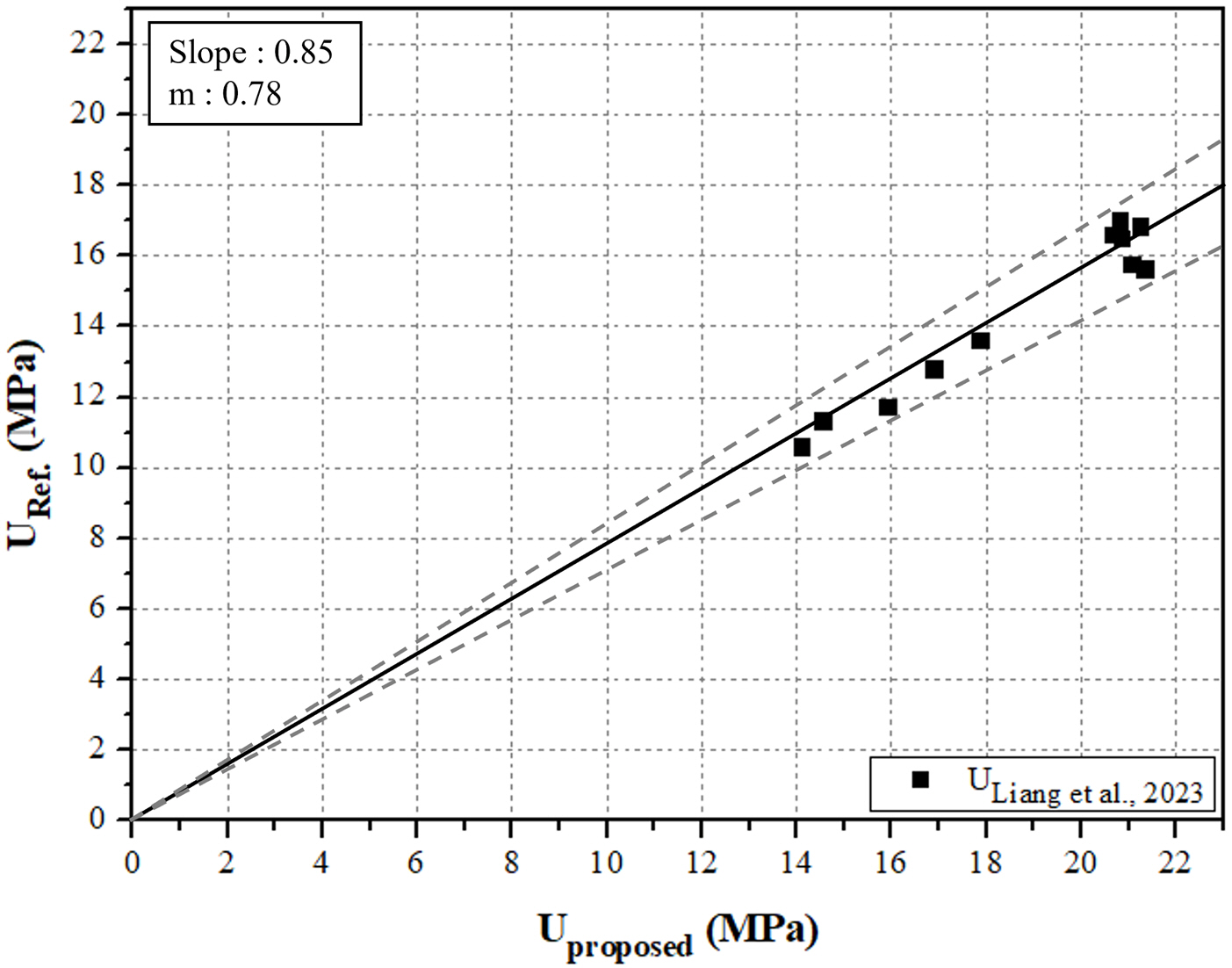 예측값 $U_{proposed}$ 간의 편차가 크지 않으며 모델의 예측이 안정적인 것으로 판단해 볼 수 있다. 한편, 본 연구에서 제안한 모델식에