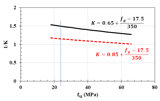 실험결과를 기반으로 제시되었기 때문에 그라우트 폭이 넓은 접합부의 경우 그 폭이 과도하게 확장될 수 있다. 이에 그라우트 강도 증가에 따른 계수 $K$를