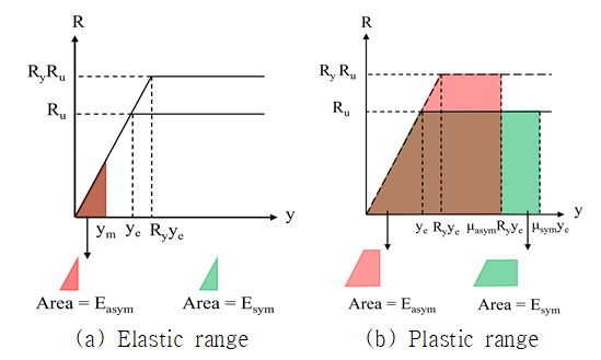 비대칭 단면은 하중 방향에 따라 다른 저항함수를 보이지만, 기존의 SDOF 해석 방법은 대칭 형태로 저항함수를 정의하는 문제가 있다. 이를 해결하기