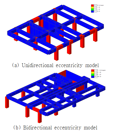 본 연구에서는 필로티 구조의 내진 성능평가 결과를 비교하기 위하여 단방향 편심과 양방향 편심을 갖는 두 가지 예제 건물을 대상으로 비선형 정적절차에