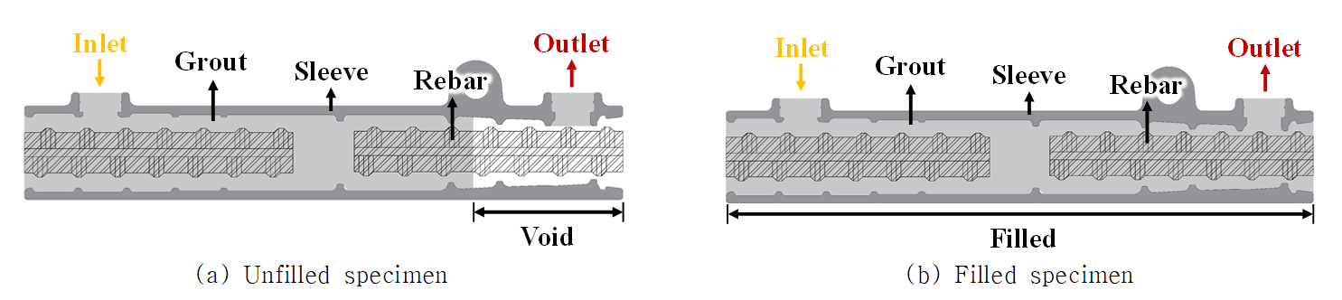 제한성을 보완하여, 실제 시공 환경에서 내부 충전 불량이 발생할 가능성이 있는 조건을 반영한 시험체를 구성하여 검증하였다.