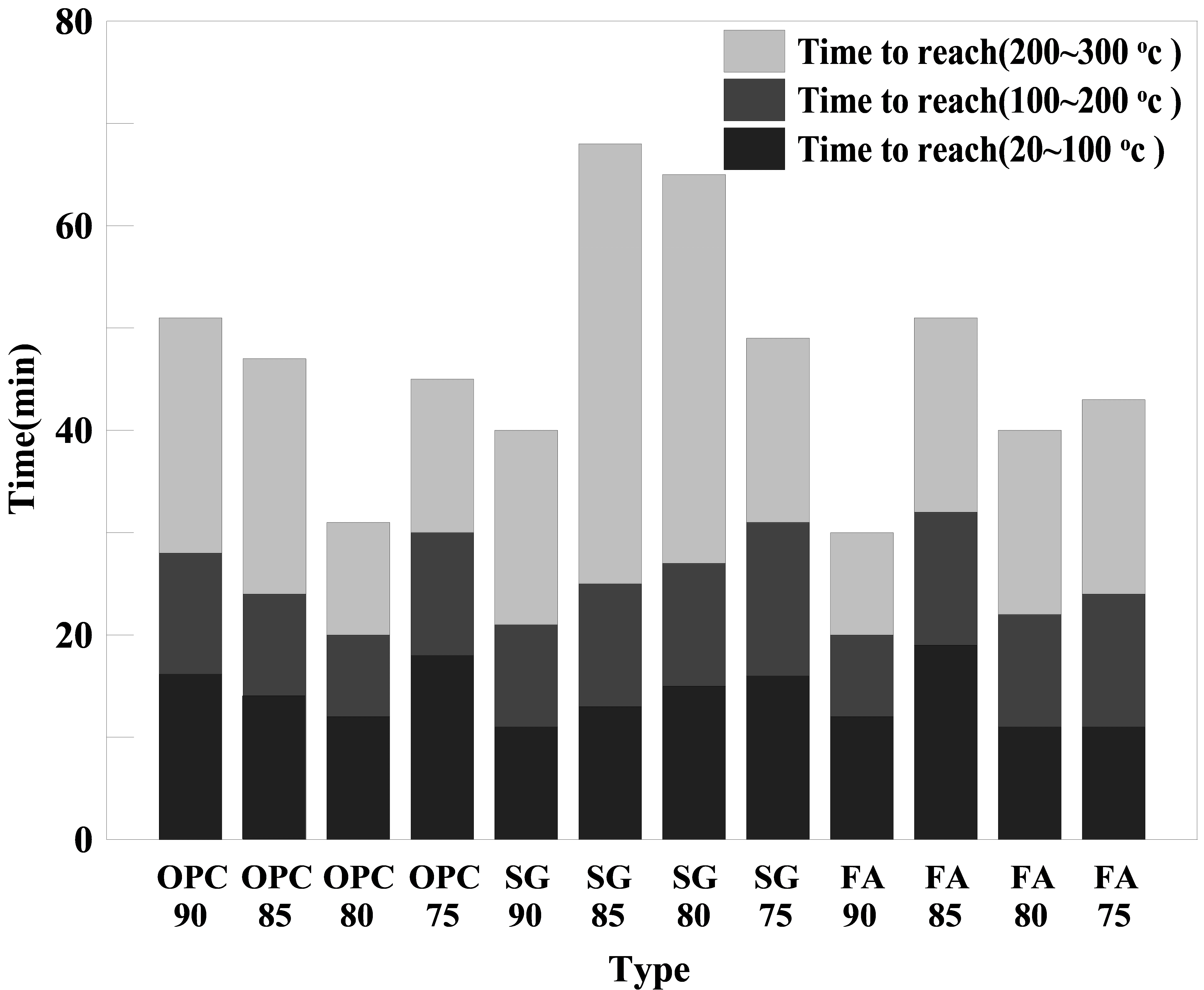 본 연구에서는 질석 사용량(S/M) 및 결합재 종류(OPC, SG, FA)를 달리 적용한 내화 모르타르를 대상으로 고온 노출 시험을 수행하고 다음과