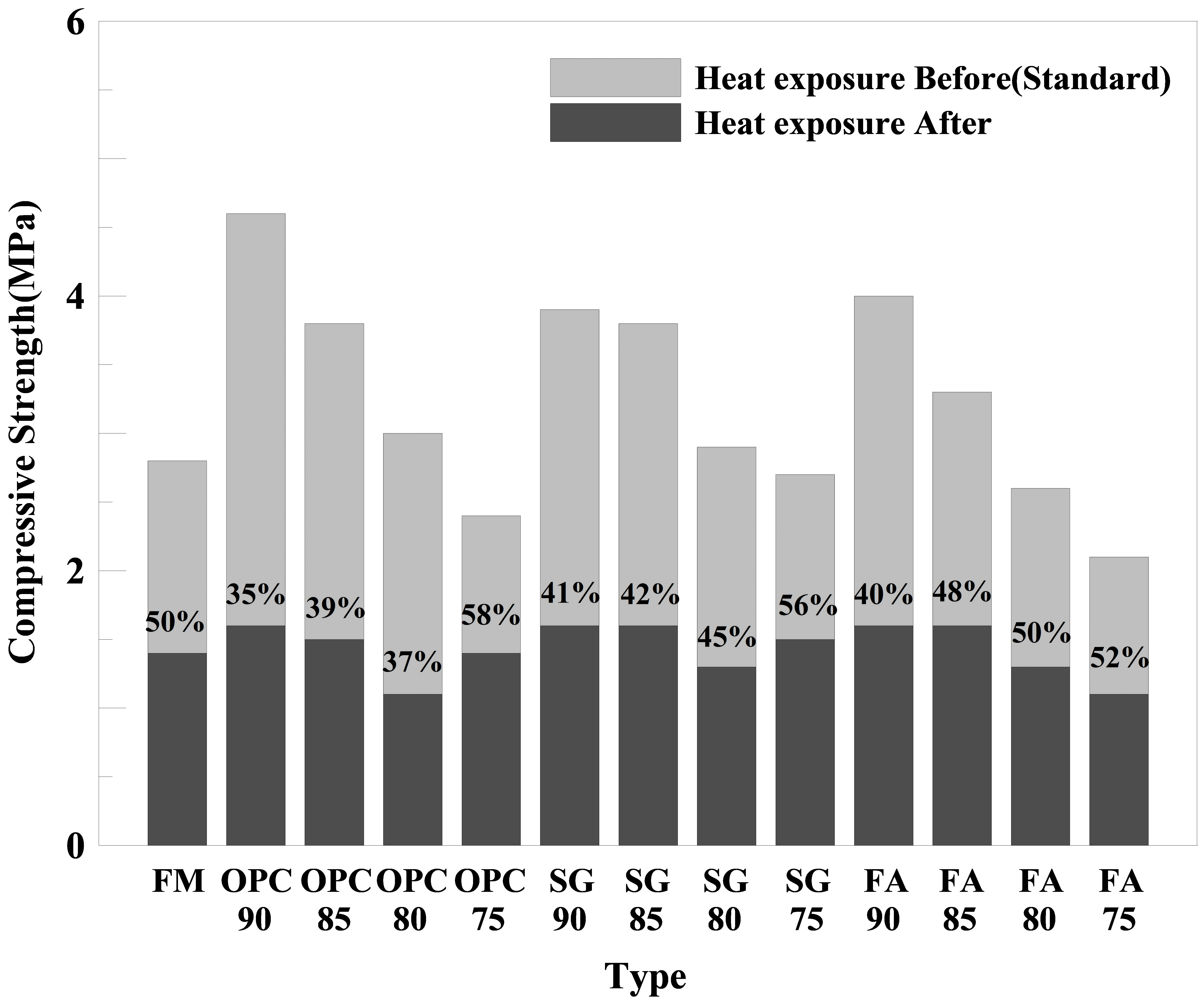 일부 향상되는 경향을 보여 고온에 노출된 모르타르의 강도 손실을 보완하는 데 효과를 확인하였다.