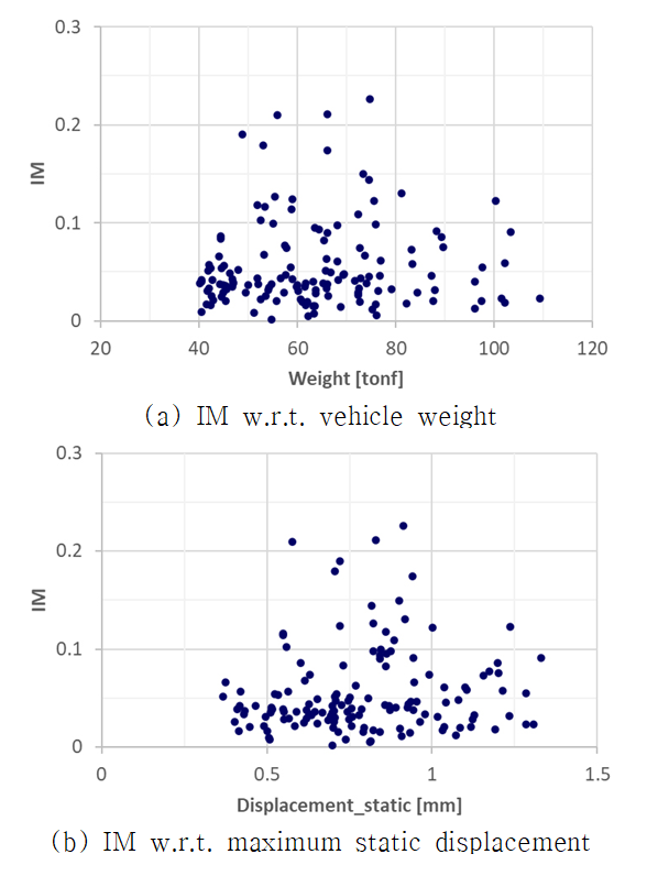 형식의 차량이 다른 형식의 교량을 통과할 때 충격계수가 어떠한 경향을 나타내는지 등에 대한 추가 연구를 진행할 필요성이 있음을 확인하였다.