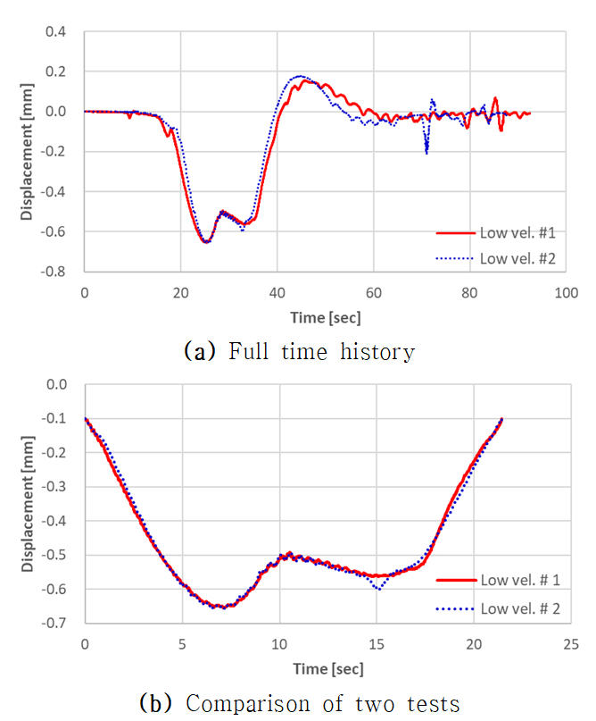 Fig. 19에 후반 축 중량이 큰 경우의 대표적인 변위응답 그래프를 나타내었으며, 전반 축이 통과하면서 가진된 진동성분으로 인하여 후반 축의 동적 성분이 크게