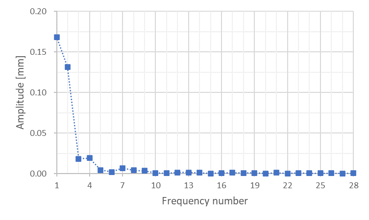 최저차 4개 진동수 성분을 고려하였으며, 5축 저상트레일러의 의사정적 주행시험 결과와 비교하여 1 % 이내의 오차를 확인하였다.