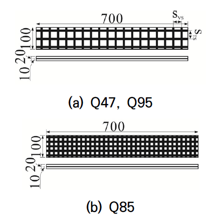 그리드 타입 FRP 인장보강재는 철근뿐만 아니라 철근 타입 FRP 인장보강재와 단면 크기 및 형상, 표면 형상, 배치 간격 등의 기하학적인 특성이