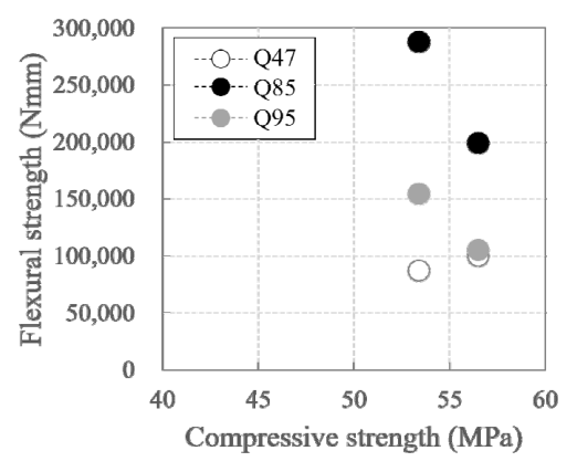 낮게 나타났다. 이는 Table 4에 나타난 바와 같이, 시험체 Q95-40과 Q95-30 표면에 부착 균열이 발생하는 등 탄소그리드와 모르타르 간 부착이 좋지 않았기 때문으로 판단된다.