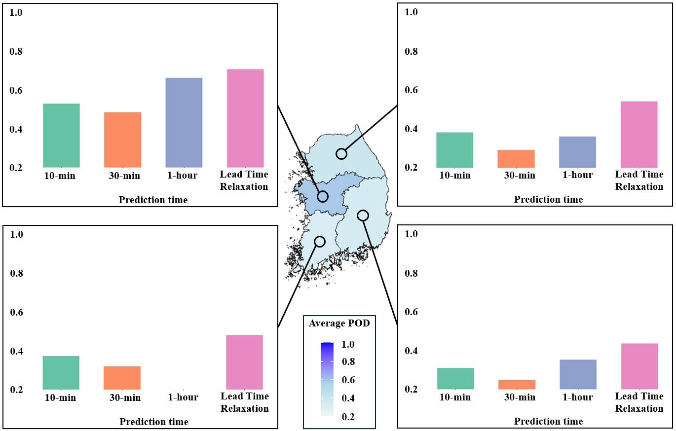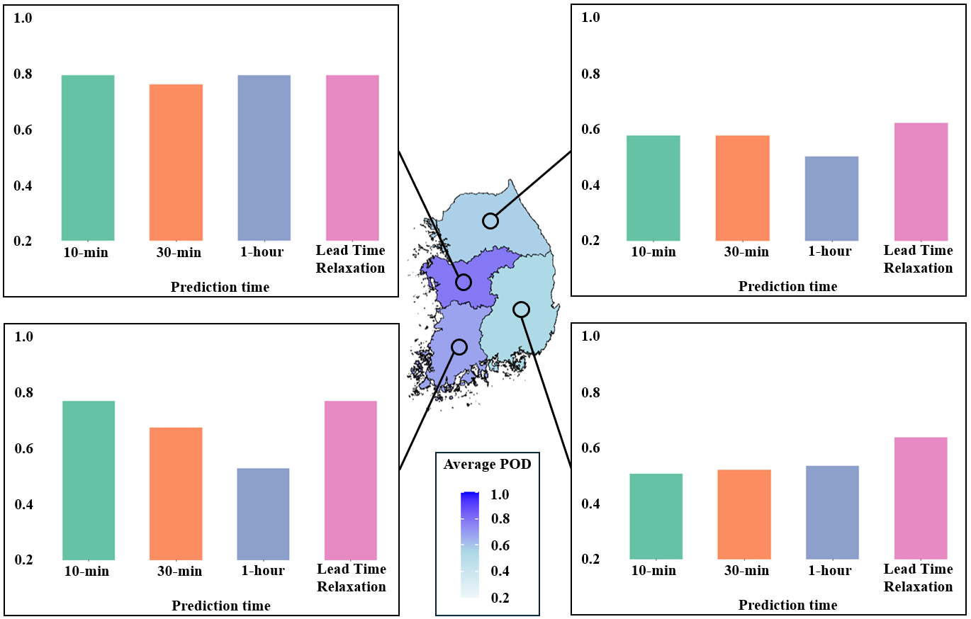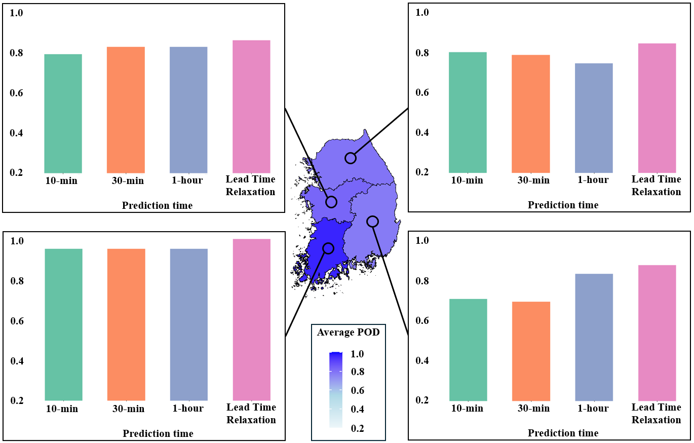 이를 기반으로 POD 분석을 수행하였다. 분석 결과, 예경보시스템의 POD는 90.3 %로 나타나 높은 수준의 예측 정확도를 보였으며, 해당 시스템이