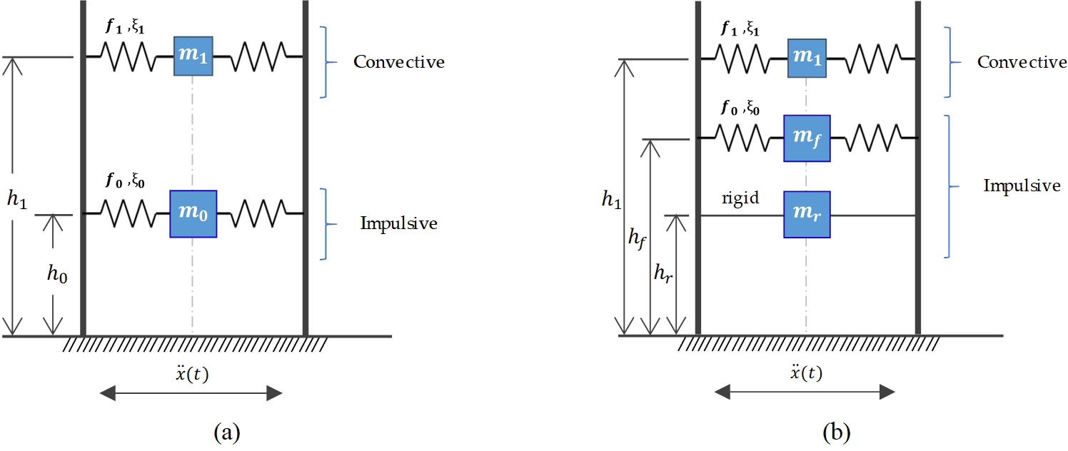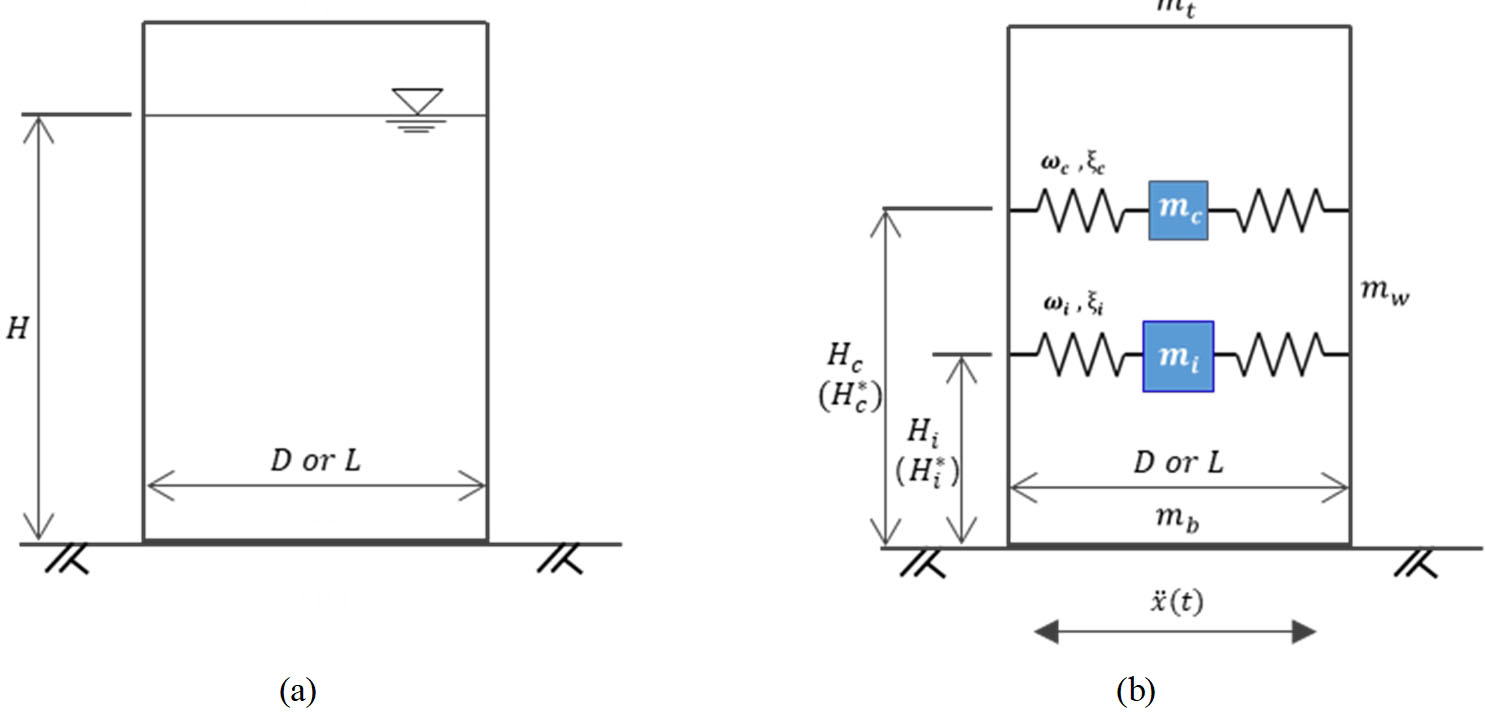 ACI 350.3-20(2021)과 NICEE Guidelines(2007)은 Housner(1957)의 강체 탱크 근사식을 기반으로 하여 Veletsos-Yang 방법을 적용하면 원통형과 사각형 액체저장탱크 모두에 대해 동등한 수준의 스프링-질량