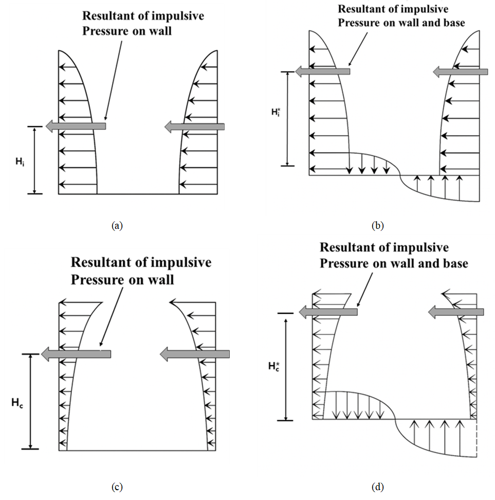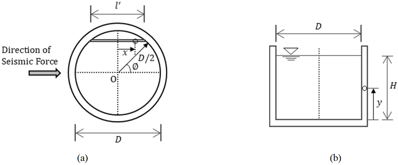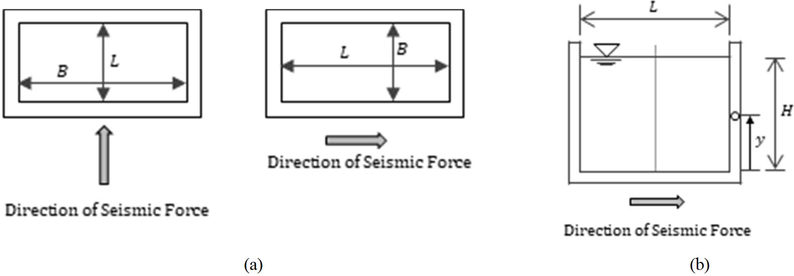 지진 시 탱크 기초에 전달된 가속도는 벽체를 통해 저장된 액체로 전달되며, 이에 따라 탱크 벽체에는 수평 방향의 동수압(dynamic hydropressure)이