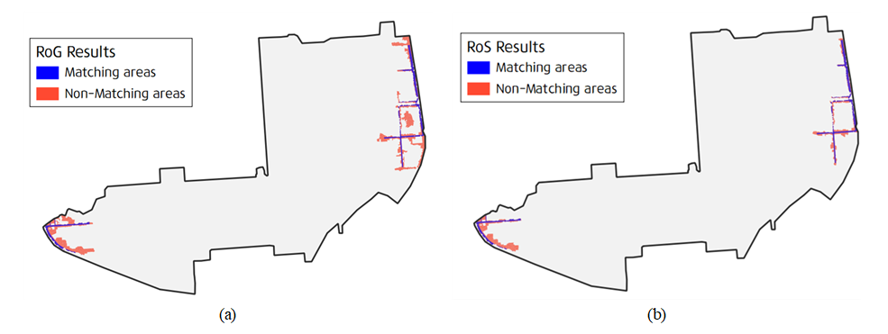 Trace Map. (a) Maximum Inundation Area (RoG), (b) Maximum Inundation Area(RoS)