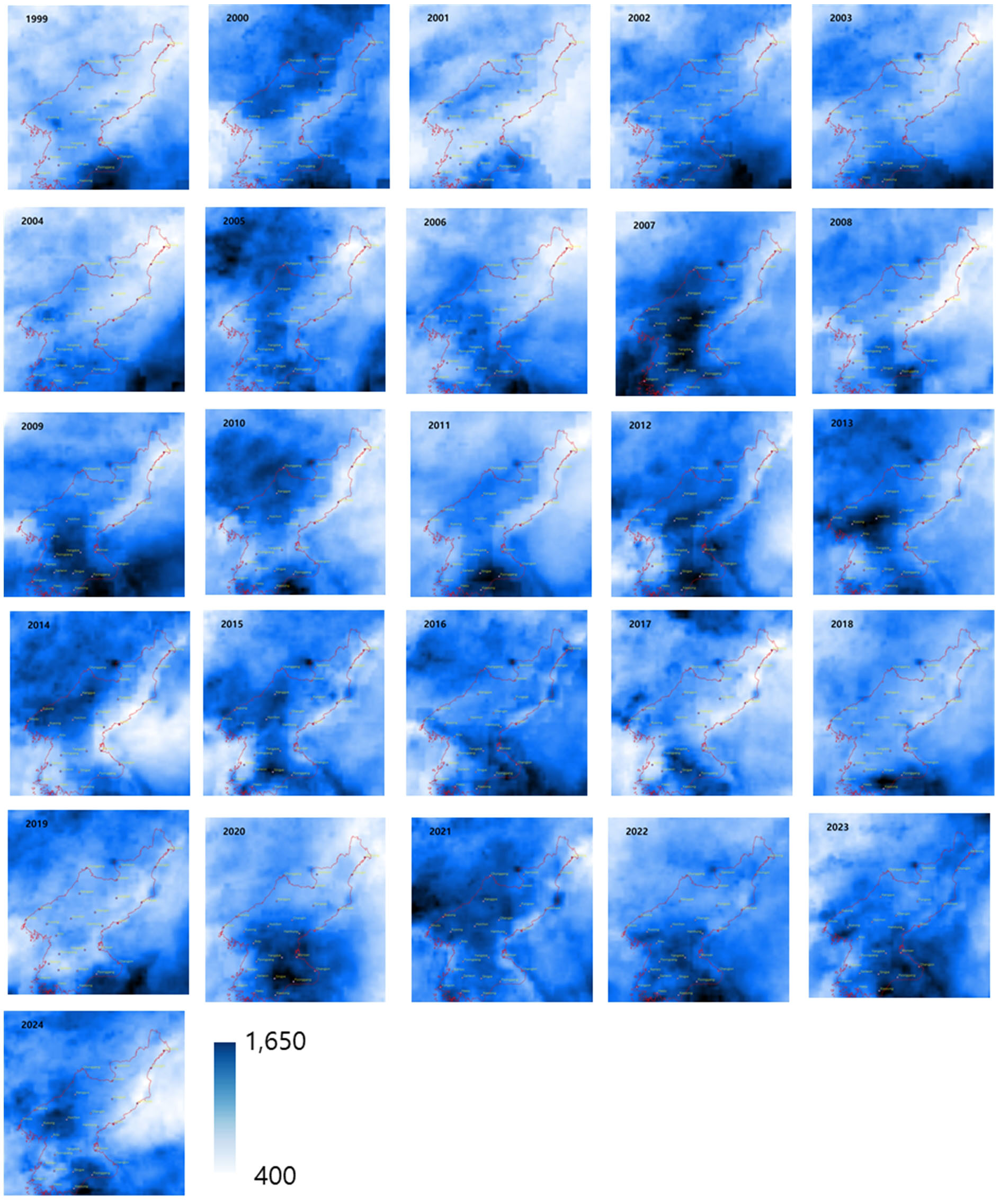 재앙적인 홍수와 농업 실패가 빈번하게 발생하고 있다고 제시하였다(Om et al., 2018). Ryang et al.(2024)는 북한 기후가 여름에는 북쪽으로 이동하는 아열대 고기압으로 습하고 따뜻한 남풍이 흐르고, 겨울에는 시베리아와 몽골의 대륙 저기압이 연구 지역의 춥고