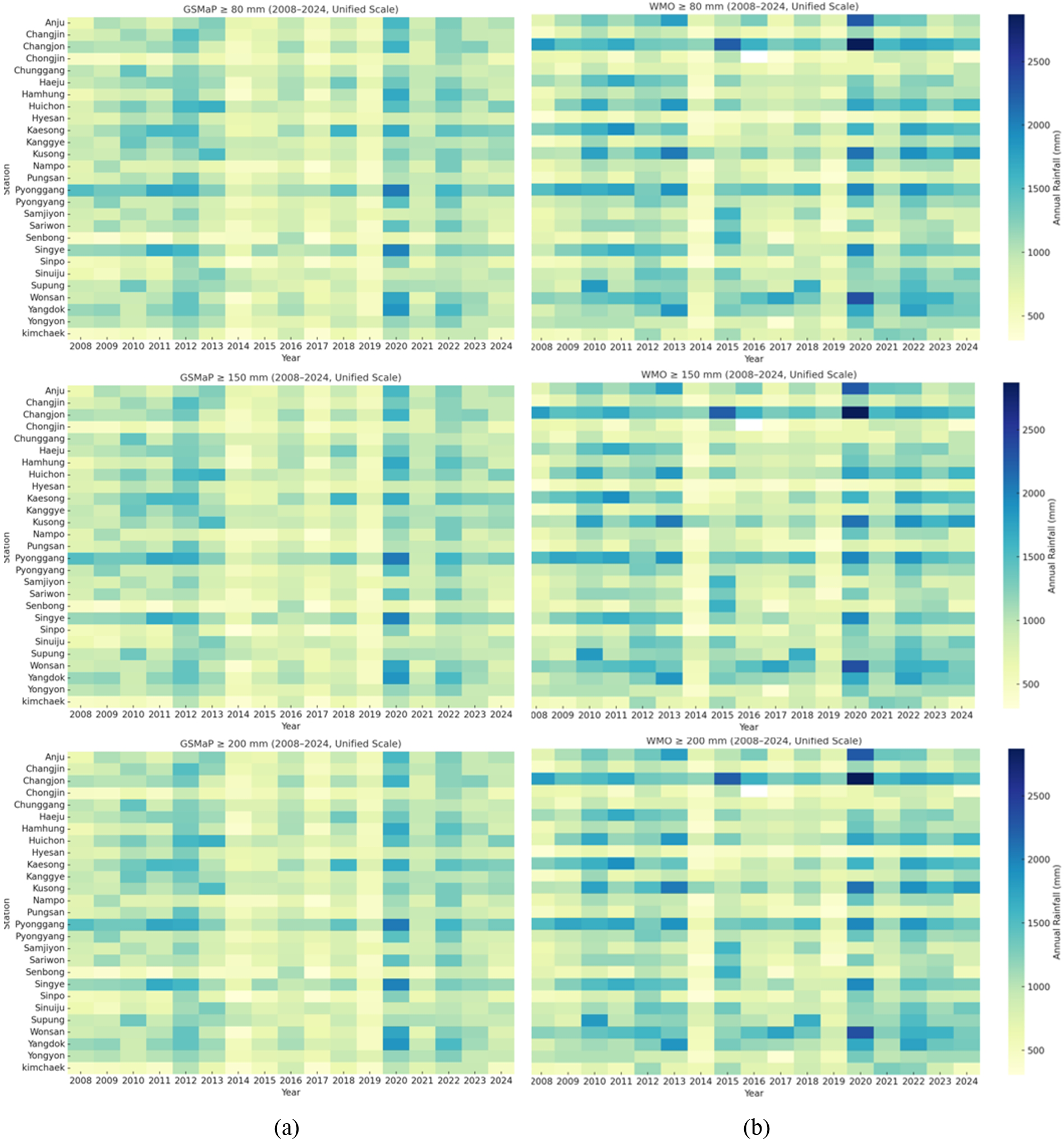 GSMaP_MVK는 북한 전역에서 강수의 공간패턴과 계절적 변동성을 신뢰할 수 있게 재현할 수 있는 자료로 평가된다. 다만 관측 강우량보다 과소하게