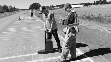Fig. 2. Measurement of Retroreflectivity Using Mobile Retroreflectometer