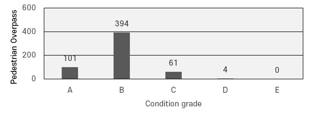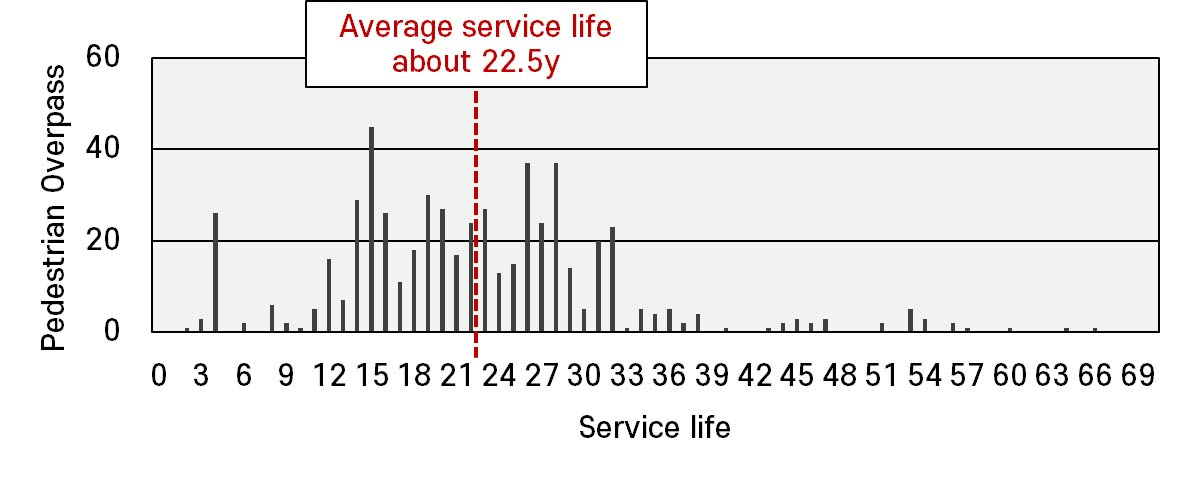 보도육교의 방법별 가치 평가결과의 적정성을 판단하기 위해 분석 대상 보도육교의 평균 공용연수, 상태등급 등을 조사⋅분석하였다. 현재 보도육교 평균
