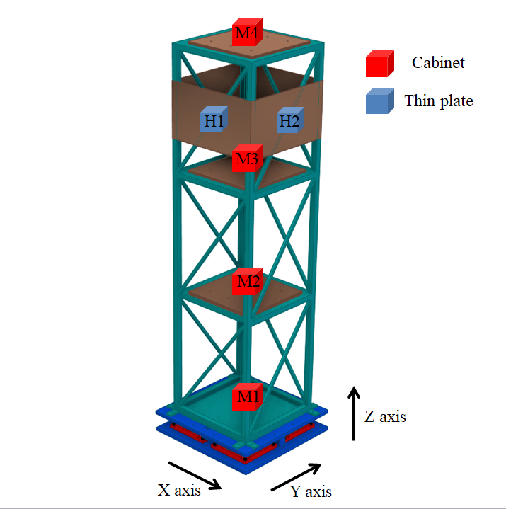 직접적으로 비교할 수 있다. 내부의 강재 플레이트는 실제 장비의 질량 분포와 동적 거동을 재현하기 위해 설계되었으며, 3층과 4층 사이에 부착된